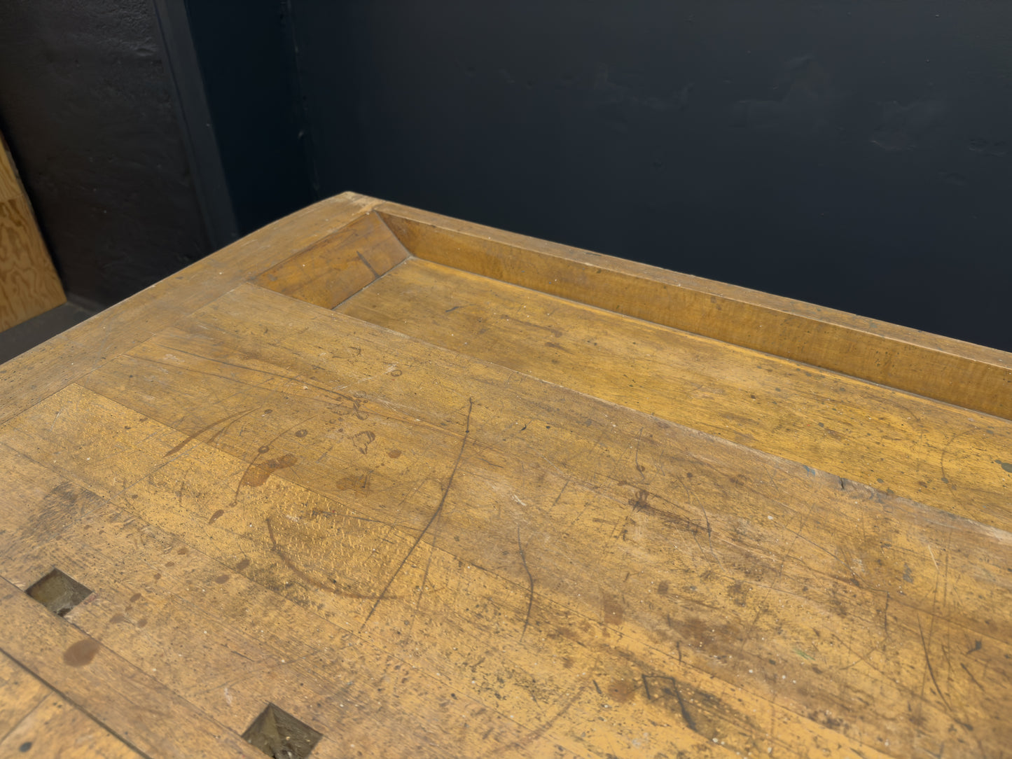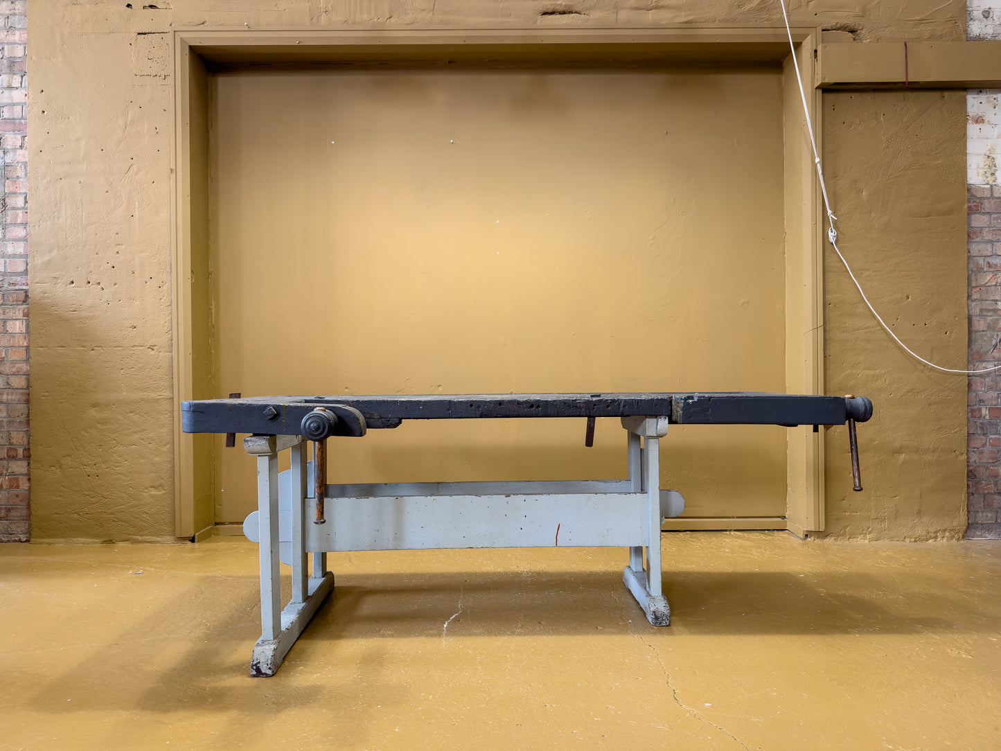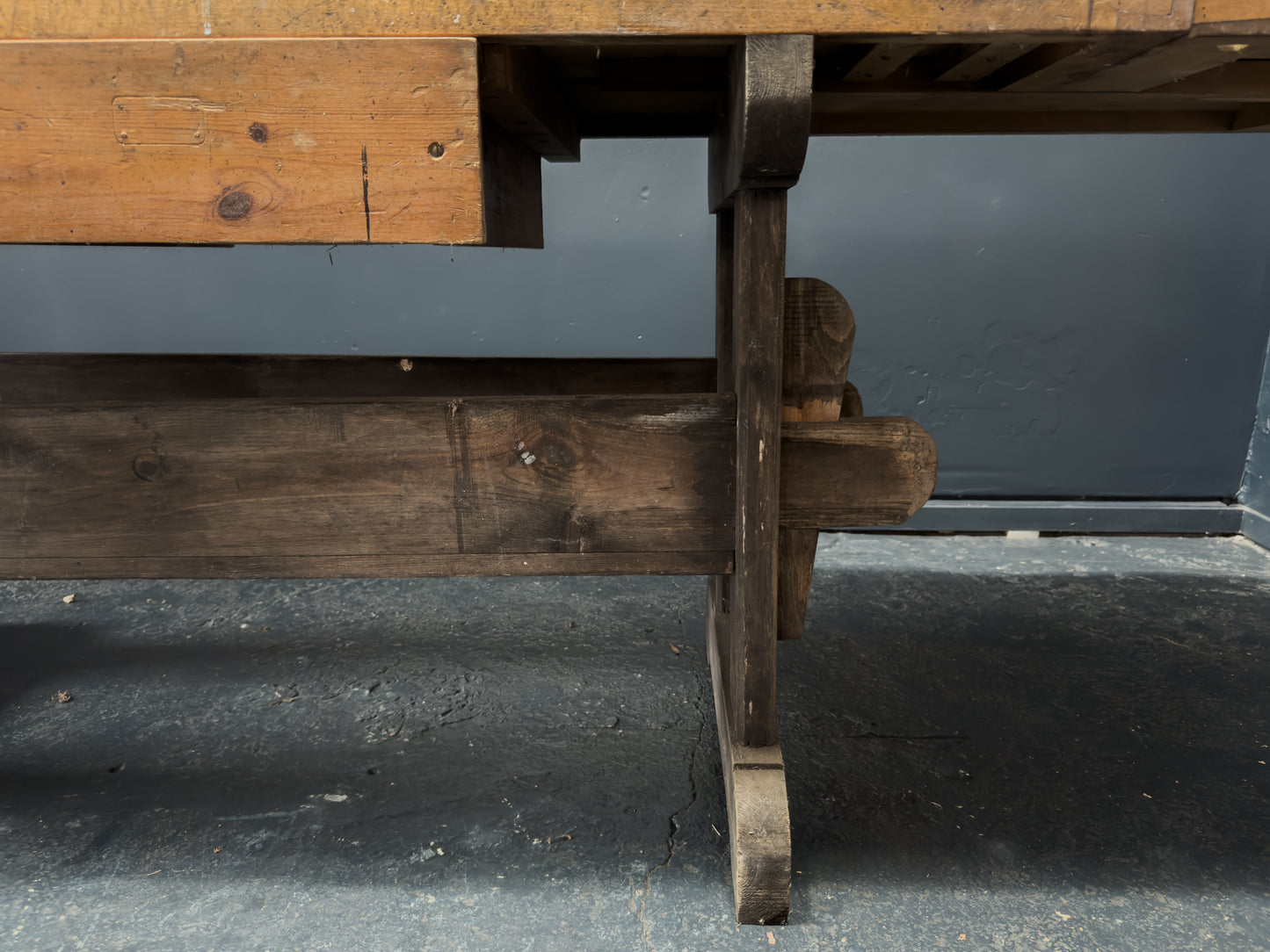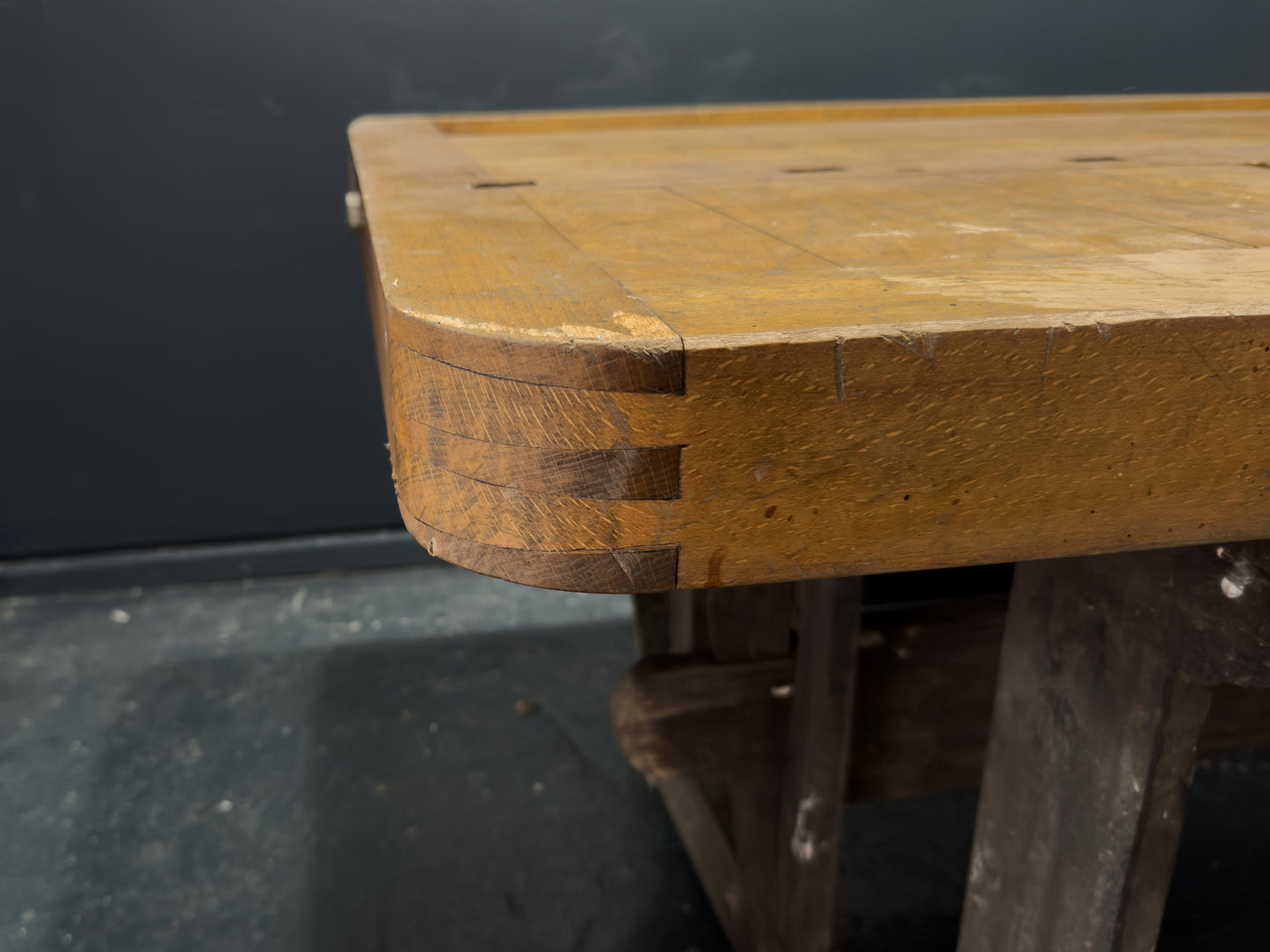 This very large classic solid workbench is made from a wonderful solid oak. Beautifully constructed, it is full of character and history. Featuring all its original functioning mechanisms and stunning exposed joinery, this piece is practical while also retaining its beauty and elegance that oozes from the craftsmanship and natural materials.