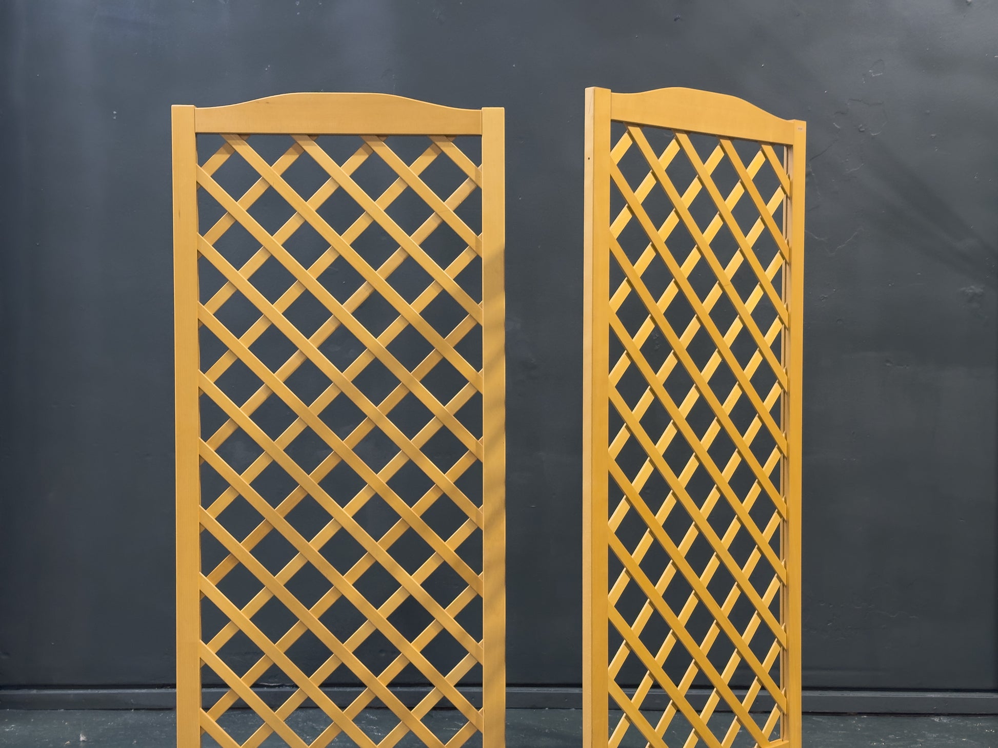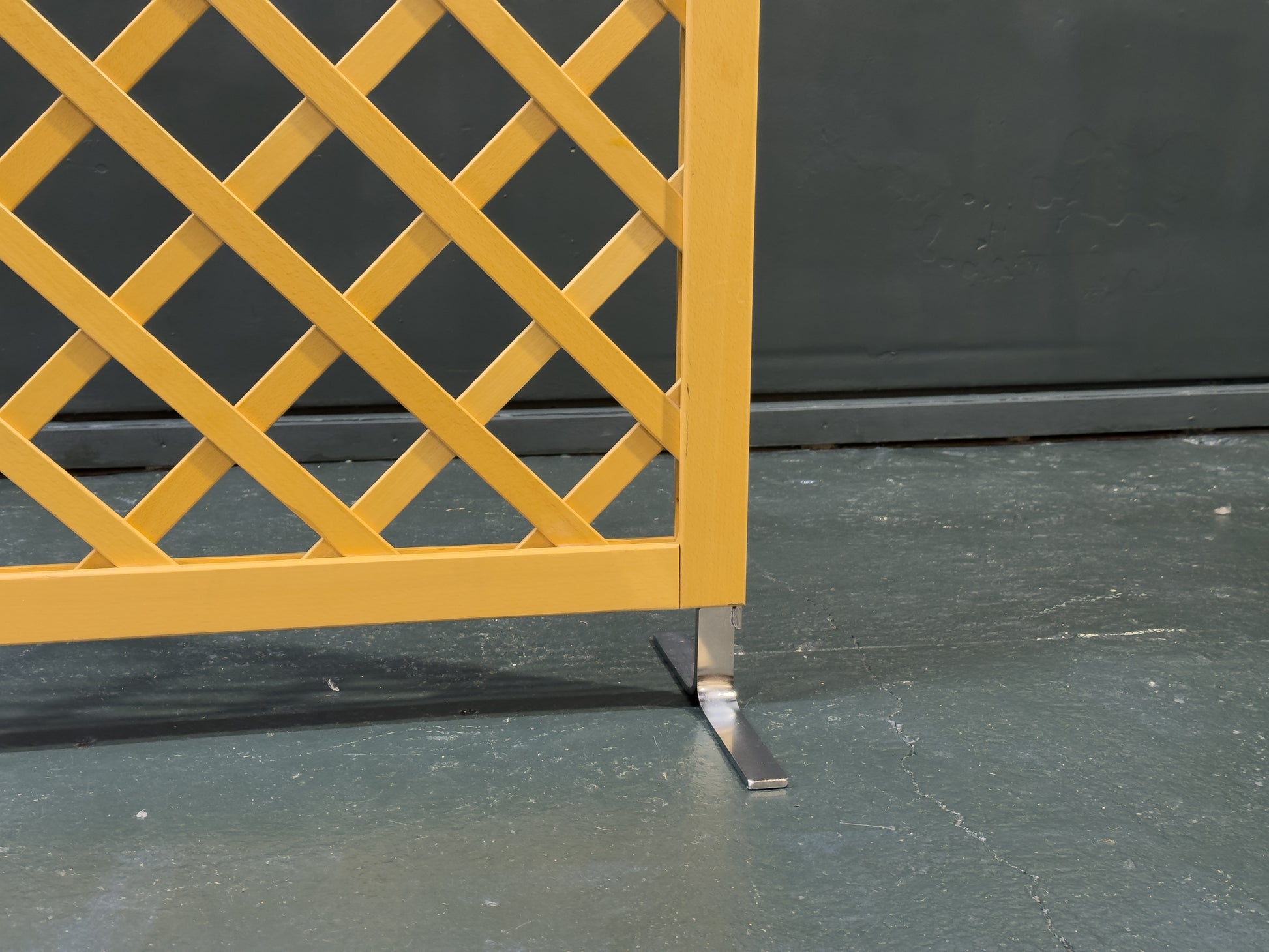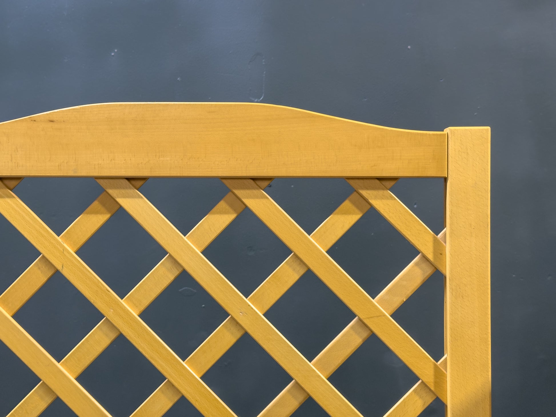 A refined beech and chrome screen featuring a clean, architectural lattice design that balances warmth and modernity. Formed from solid beech, the panels display a light, natural tone and crisp geometric cross-pattern, allowing light to pass through while still providing a sense of separation and privacy.