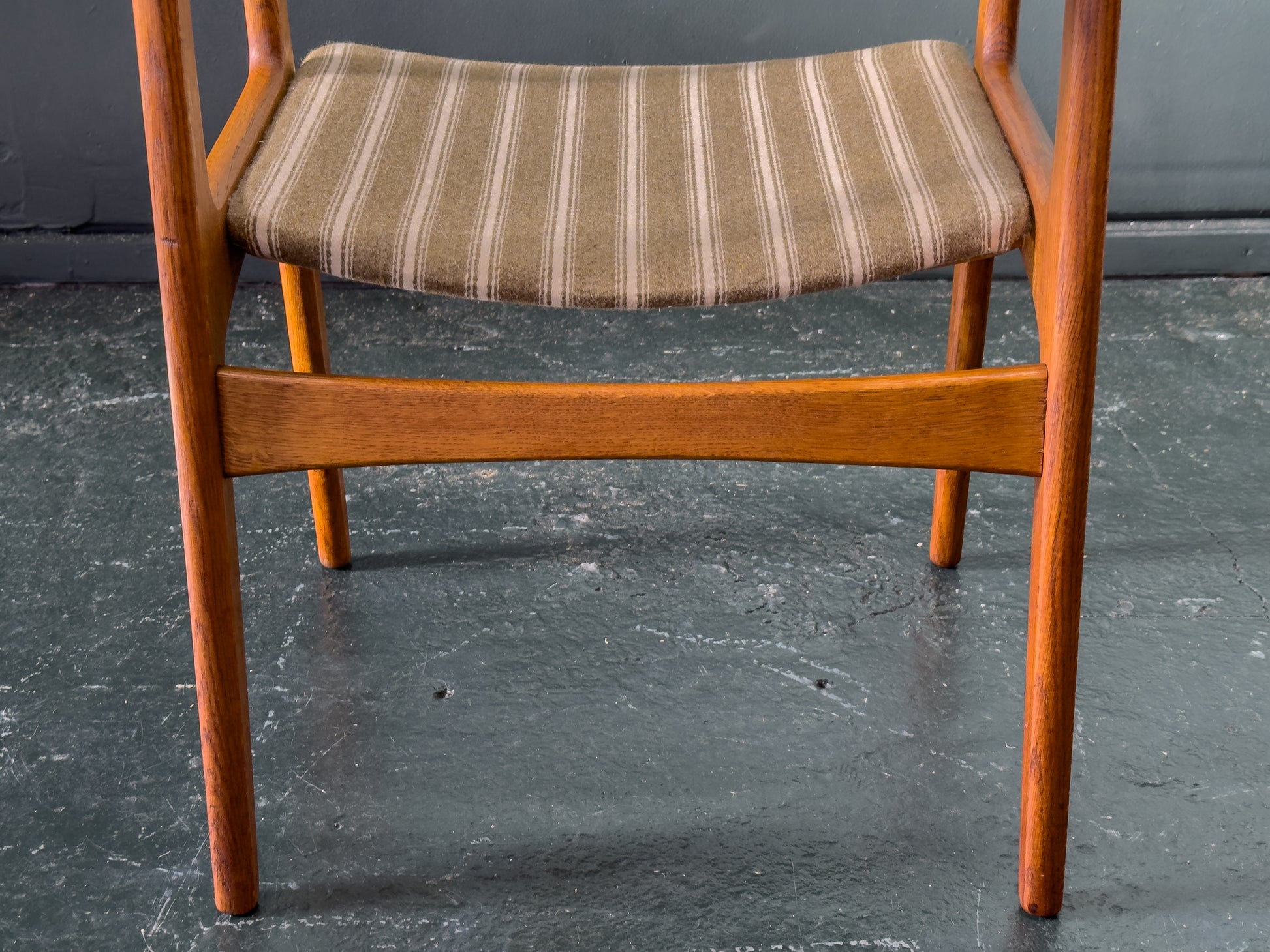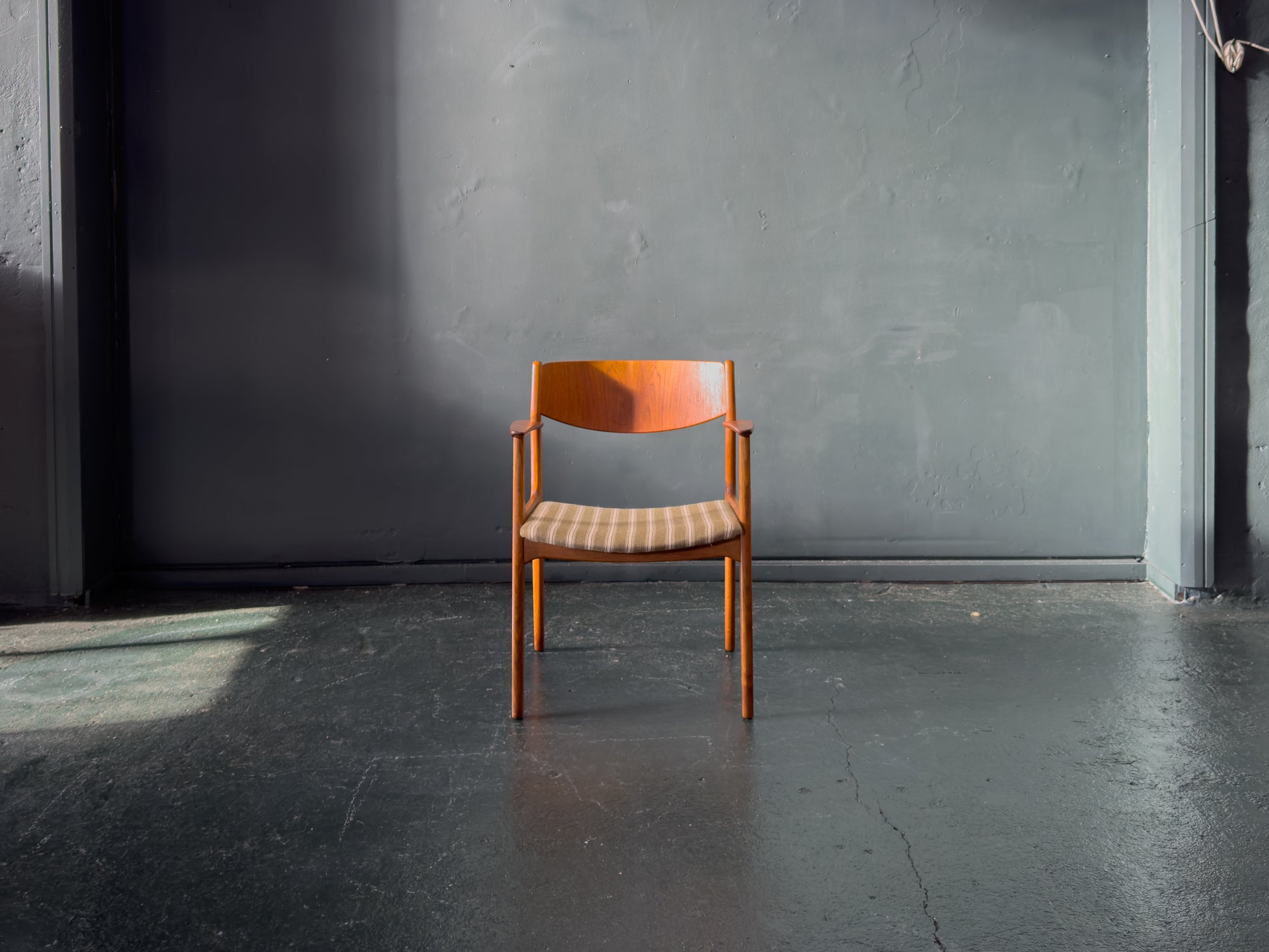 Kjærnulf's "Carver" is noted for its generous proportions. Its wider-than-average stance makes it an ideal captain’s chair for the head of a dining table or a standalone sculptural desk chair.