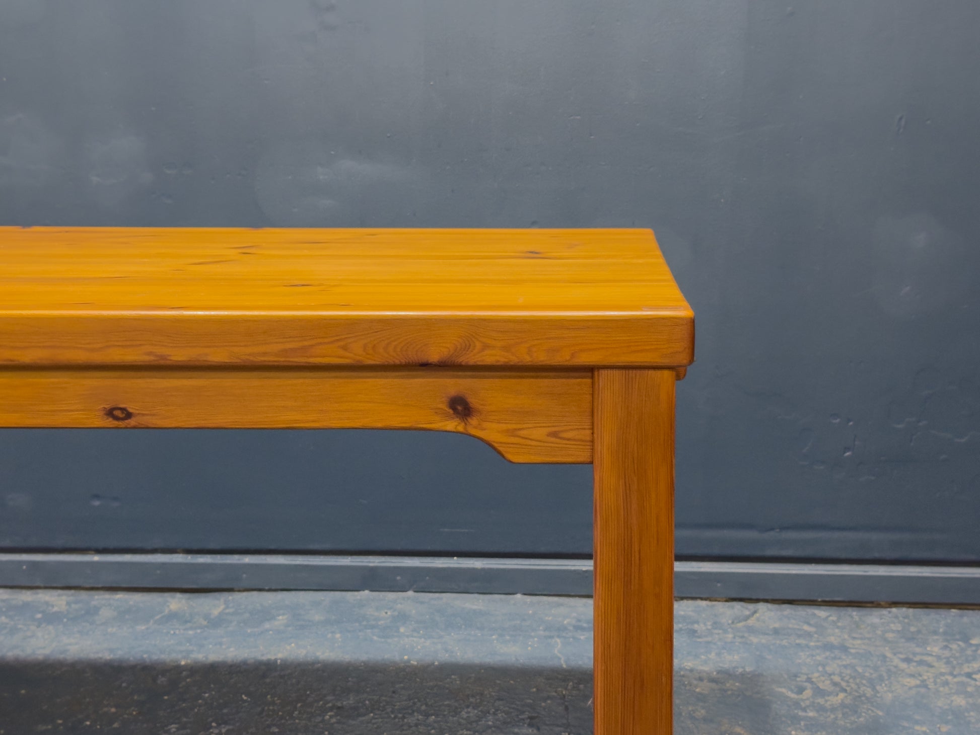 This pine dining table combines simple, solid construction with a clever, functional design. Crafted from warm, honey-toned pine, it features clean lines and visible natural grain that lend it a relaxed, rustic character.