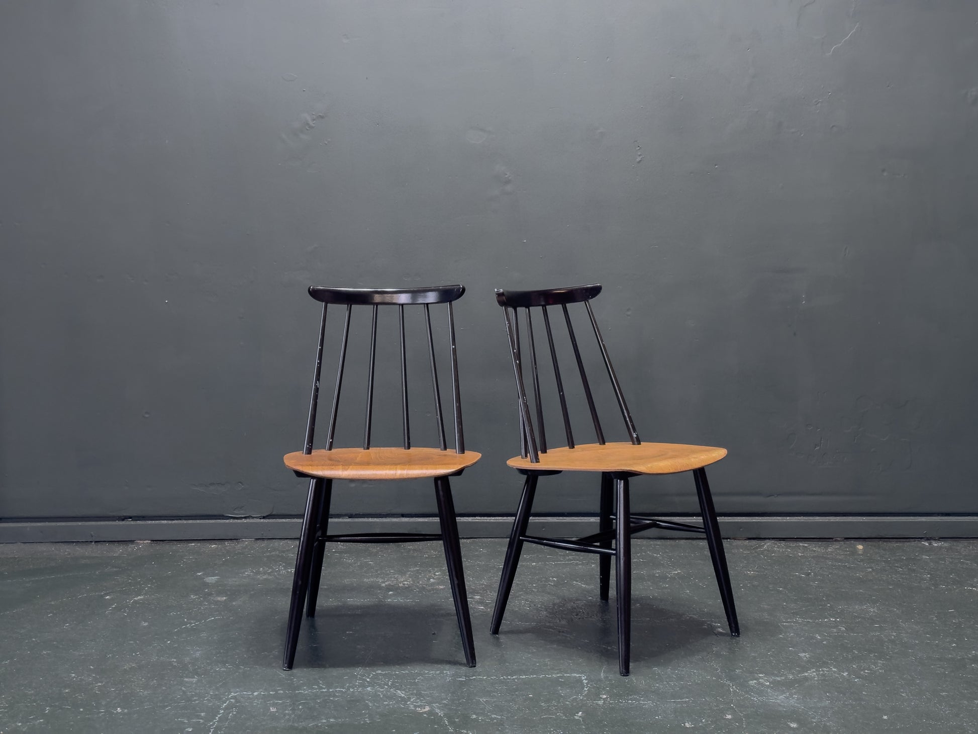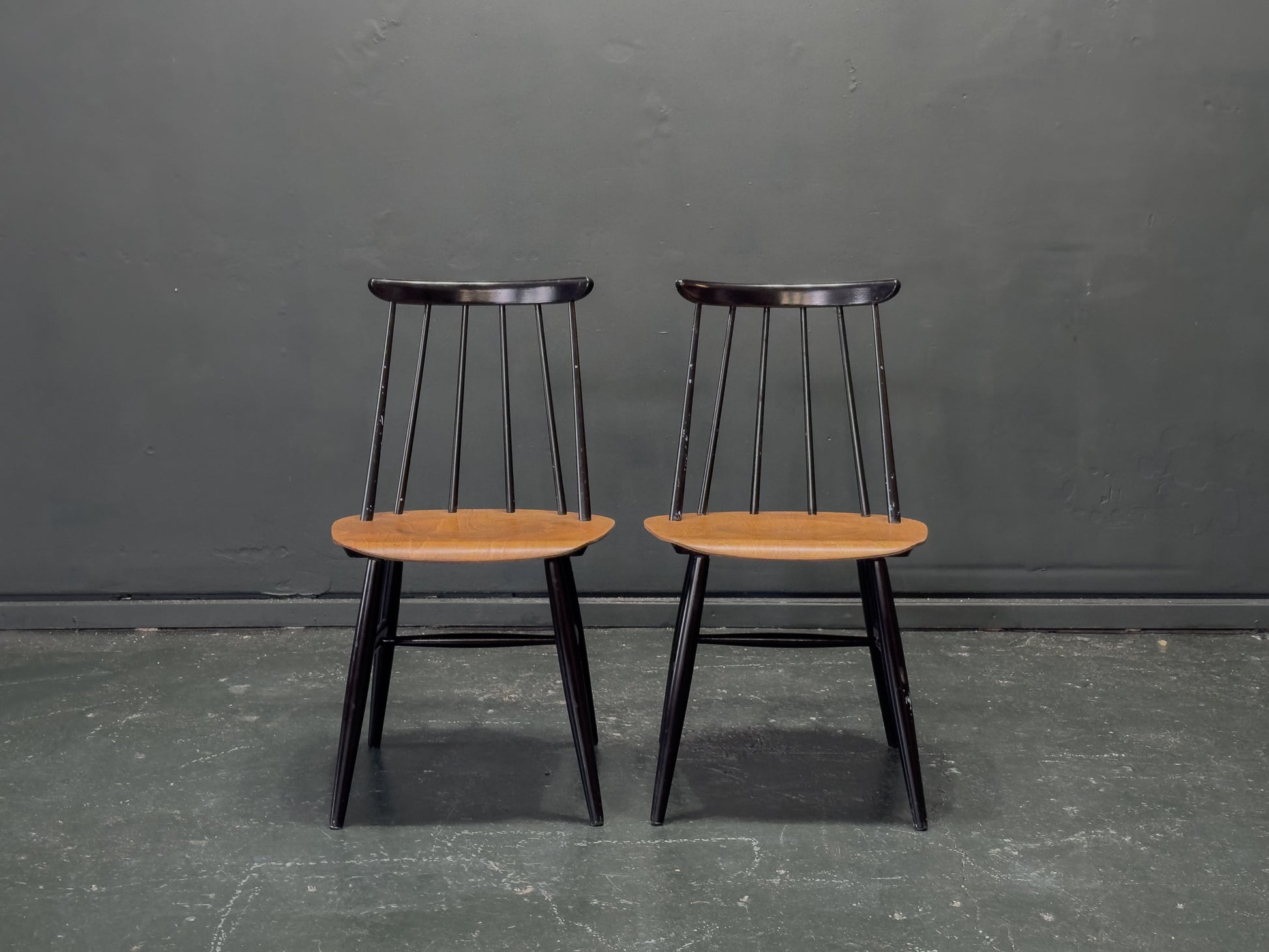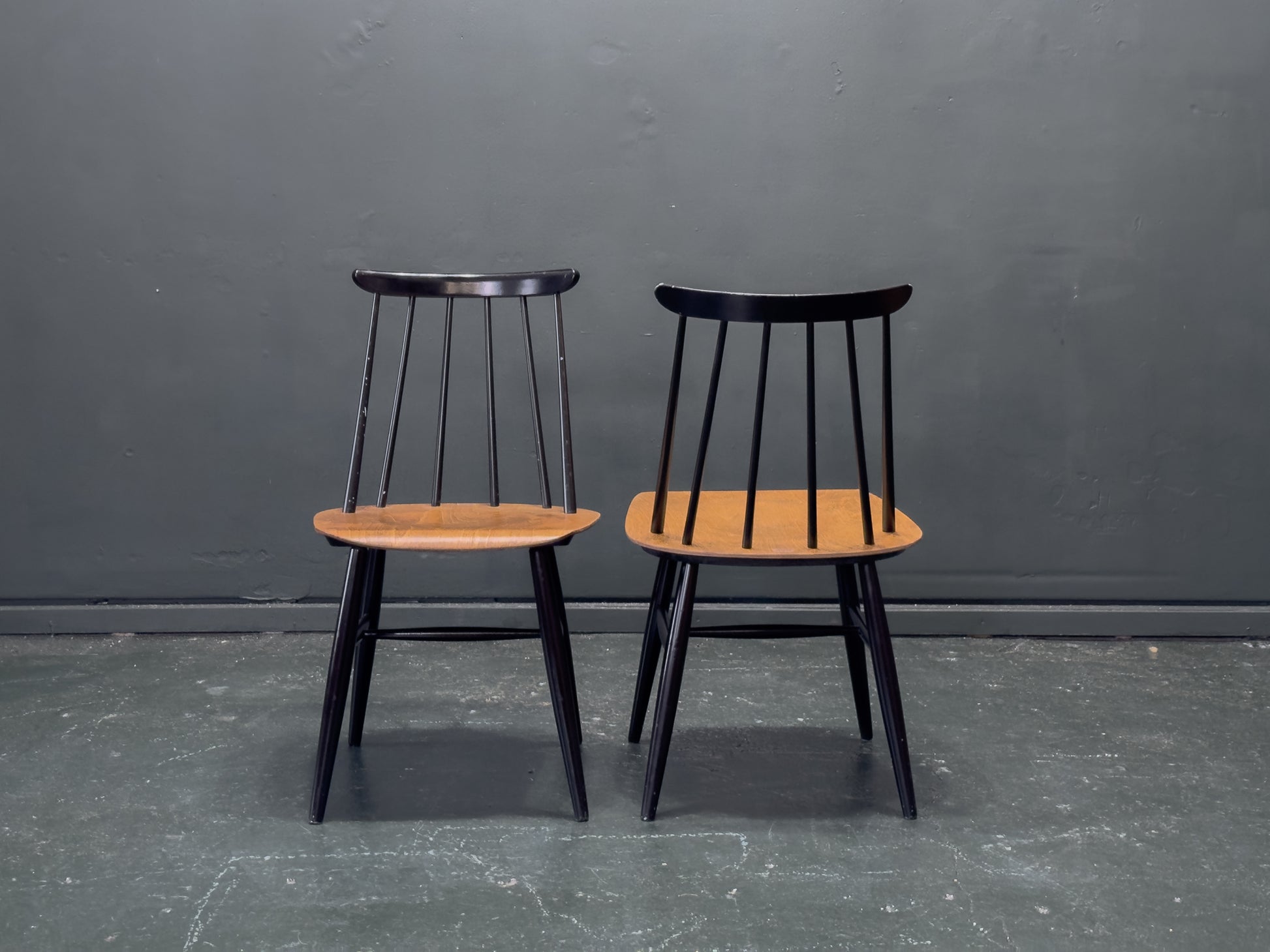 The Fanett chair, designed by the legendary Ilmari Tapiovaara for Edsby Verken in 1955, is celebrated for its distinctive spindle back and ergonomic curves, blending traditional craftsmanship with a modern, industrial edge.
