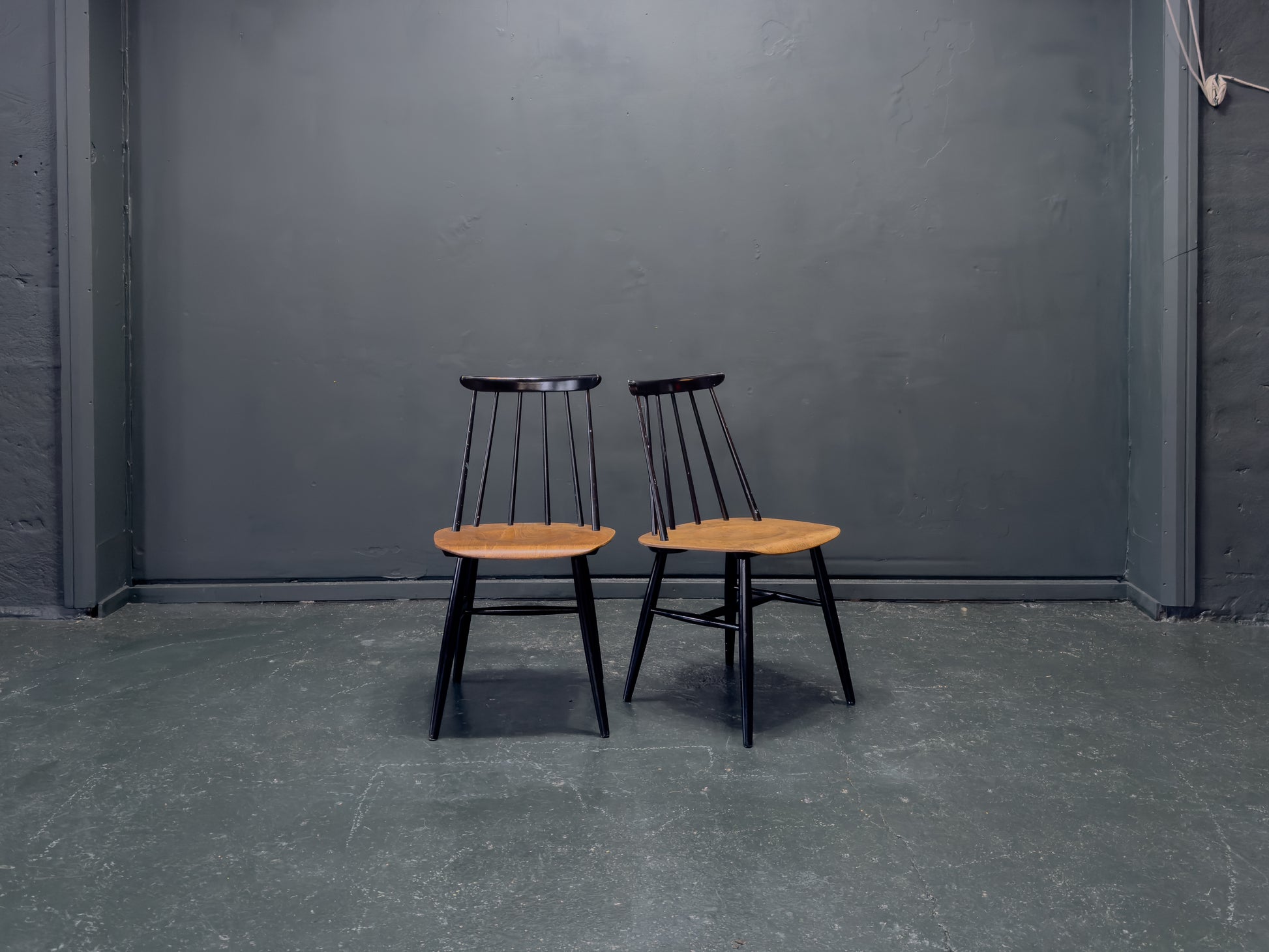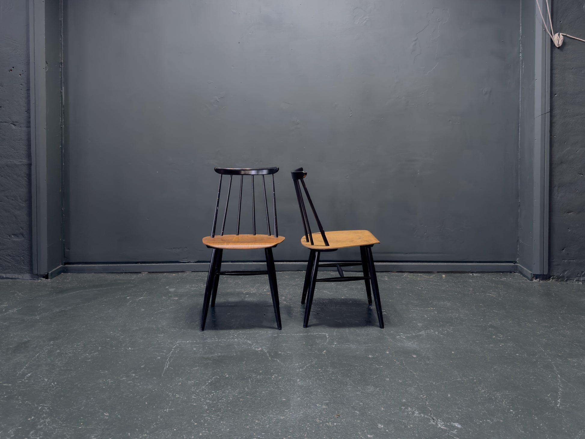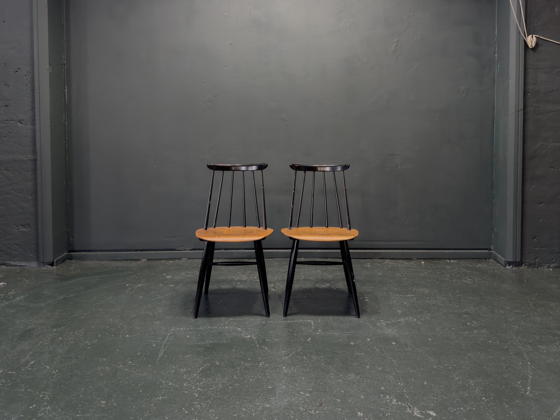 The Fanett chair, designed by the legendary Ilmari Tapiovaara for Edsby Verken in 1955, is celebrated for its distinctive spindle back and ergonomic curves, blending traditional craftsmanship with a modern, industrial edge.
