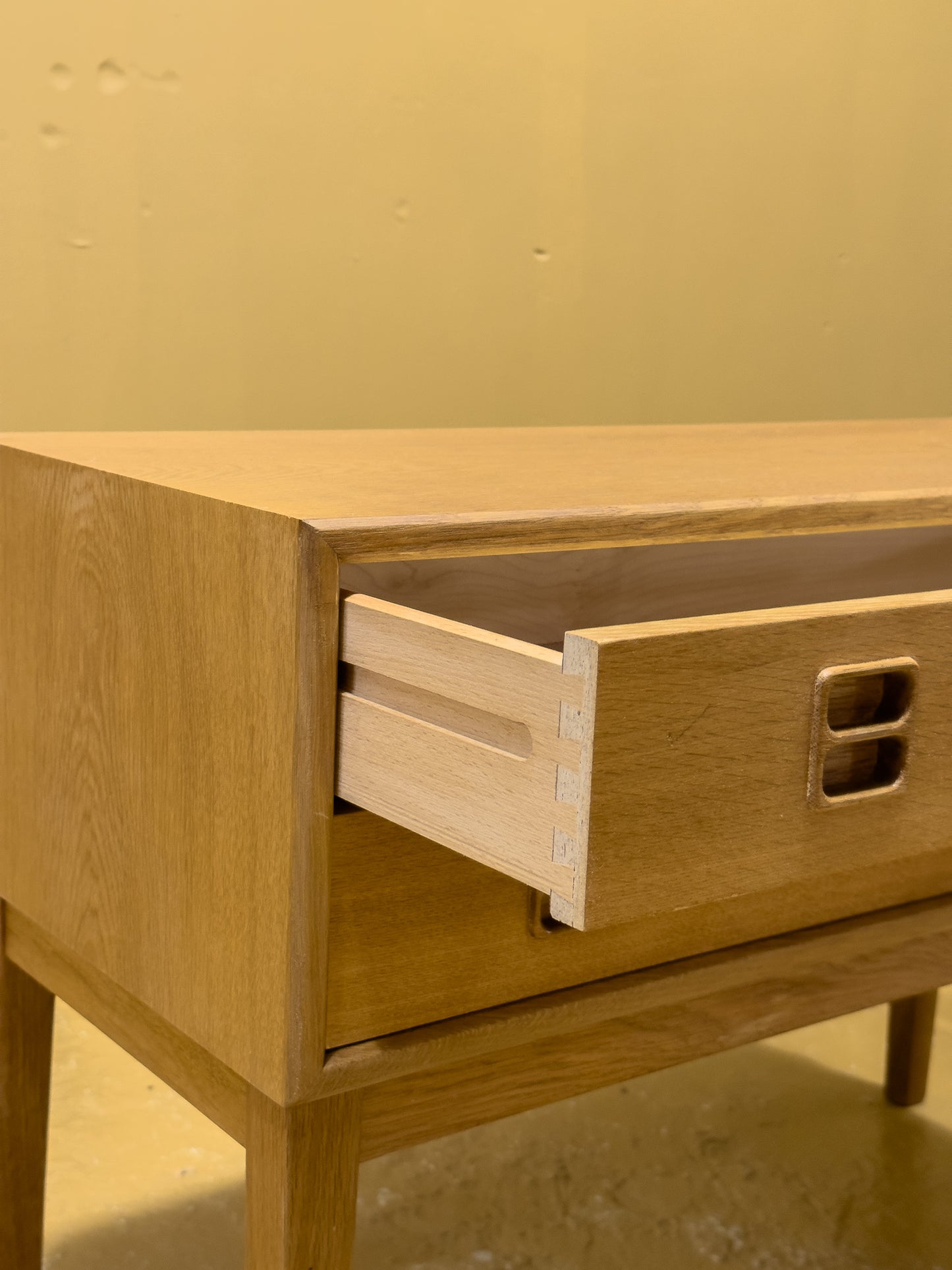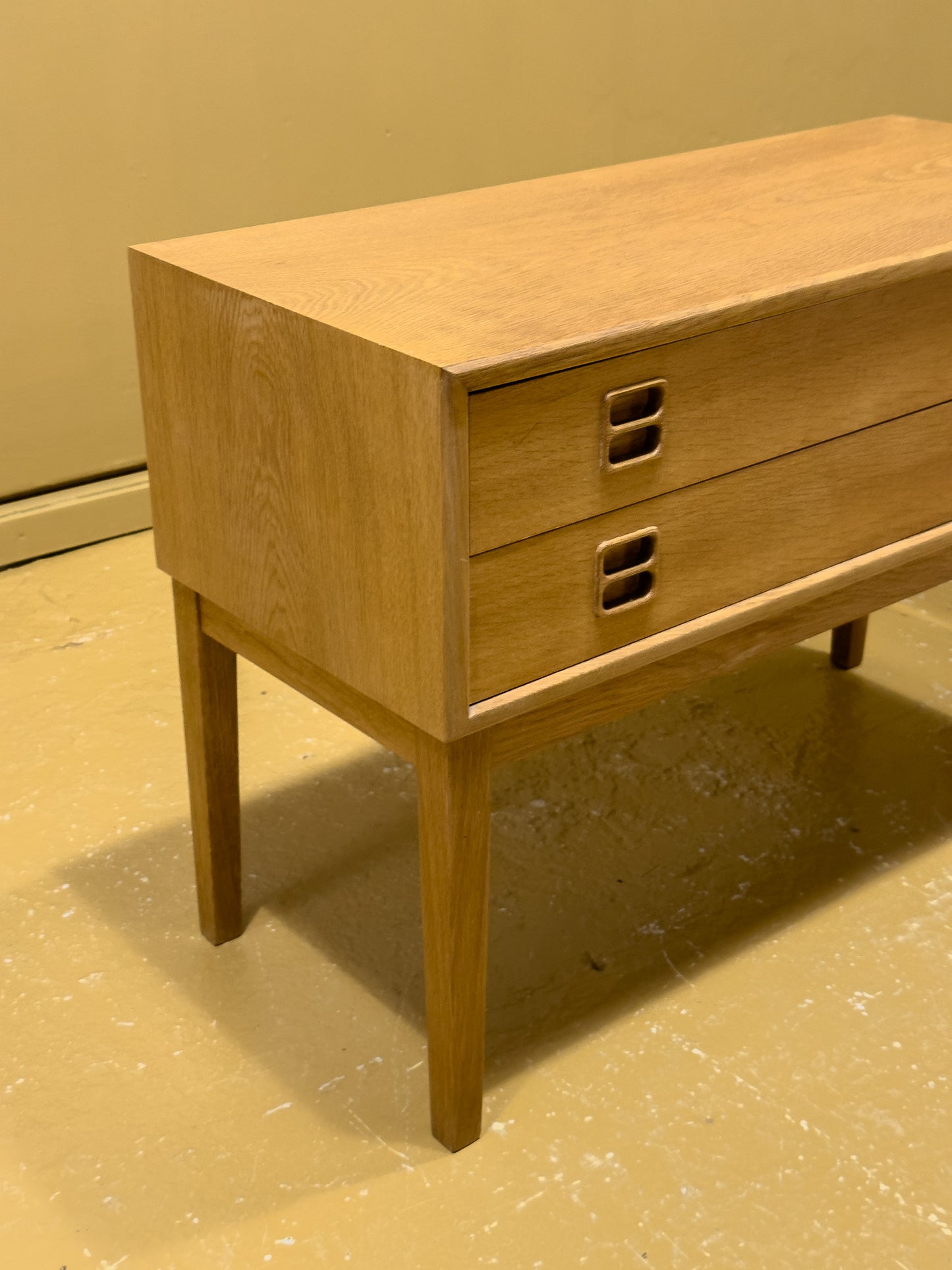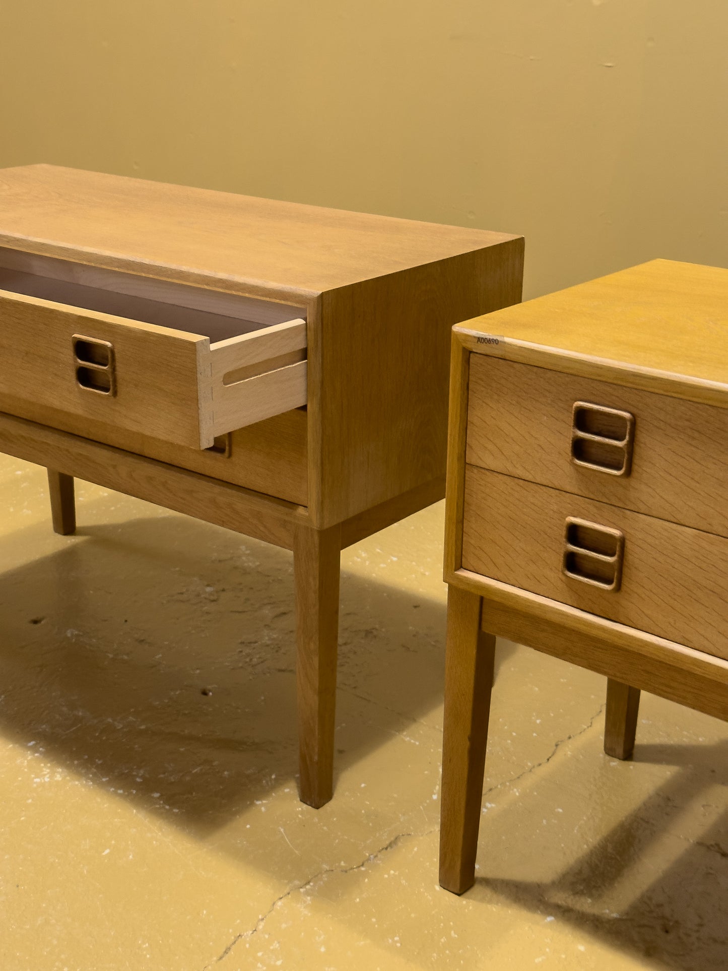 Pair of small chest of drawers. Would make great bedside tables or end of sofa pieces. Oak with a beech lining. Danish 1950s. The price is per chest of drawers.