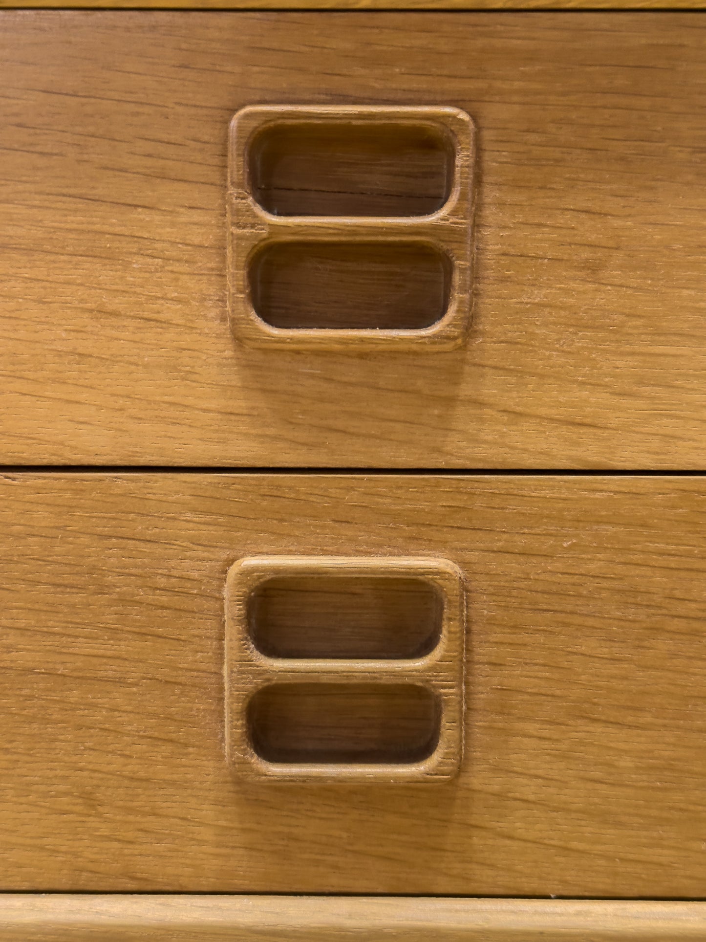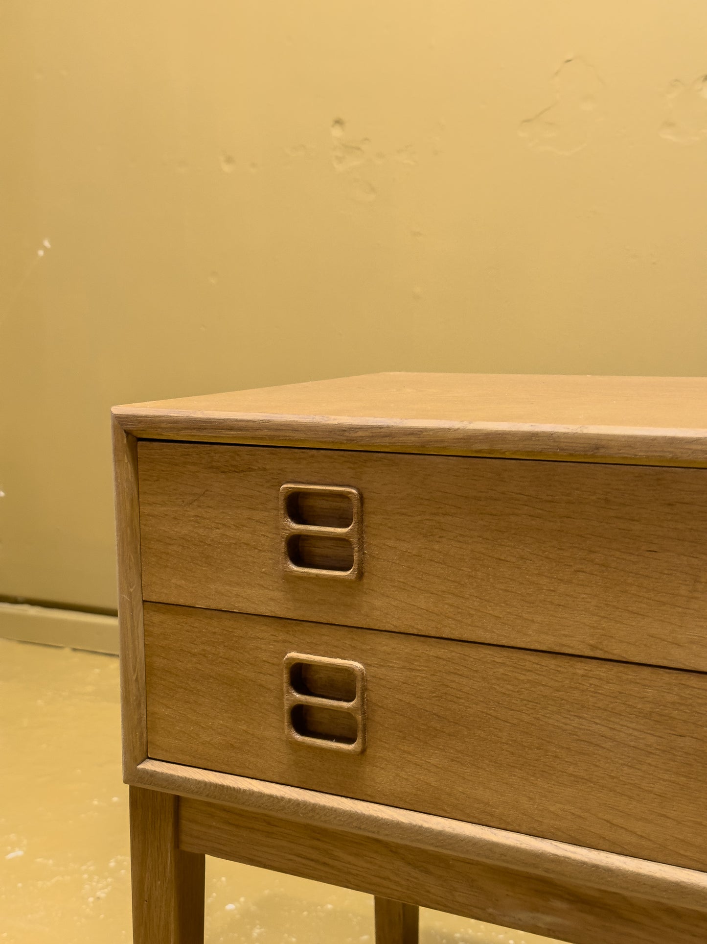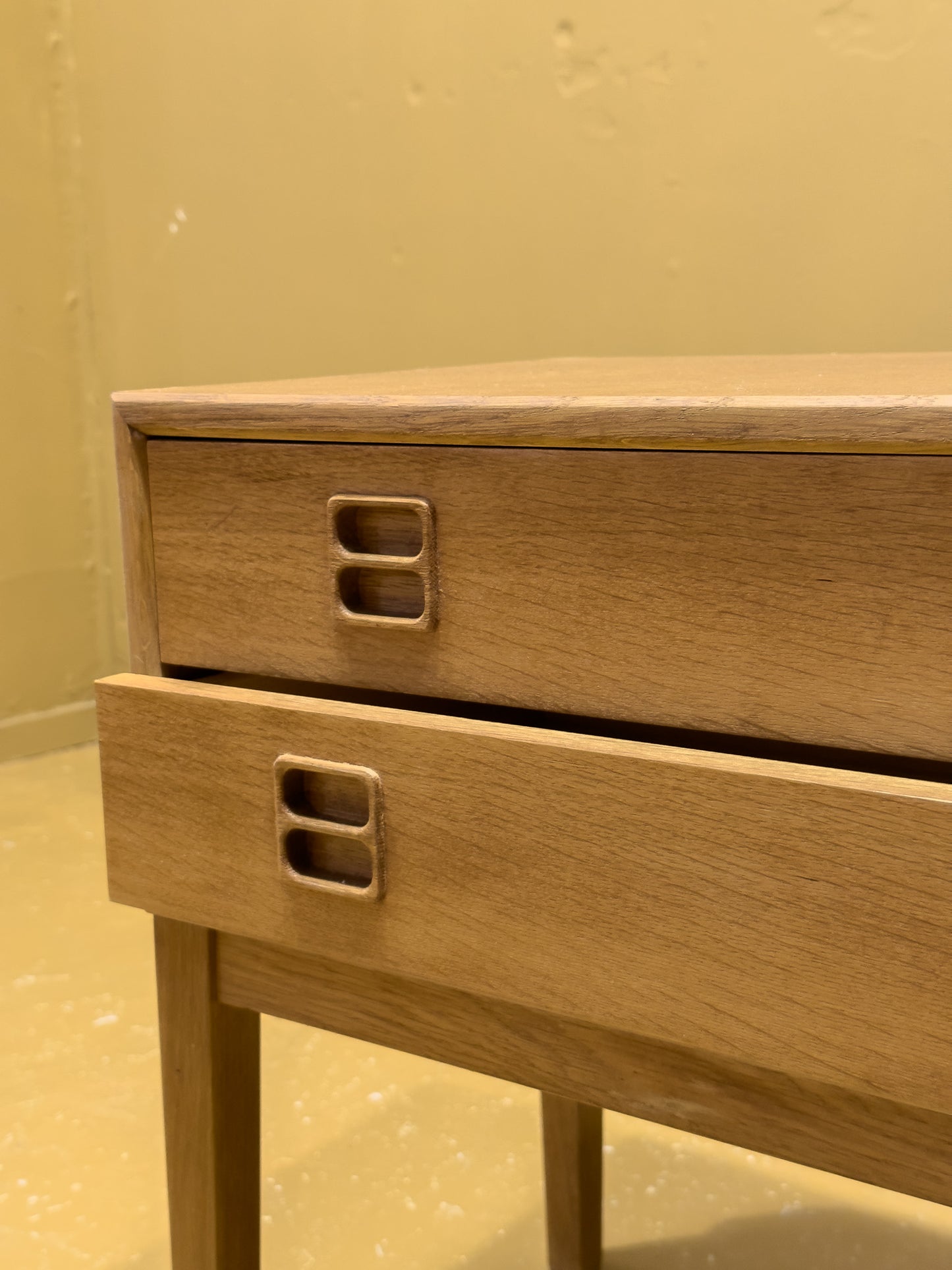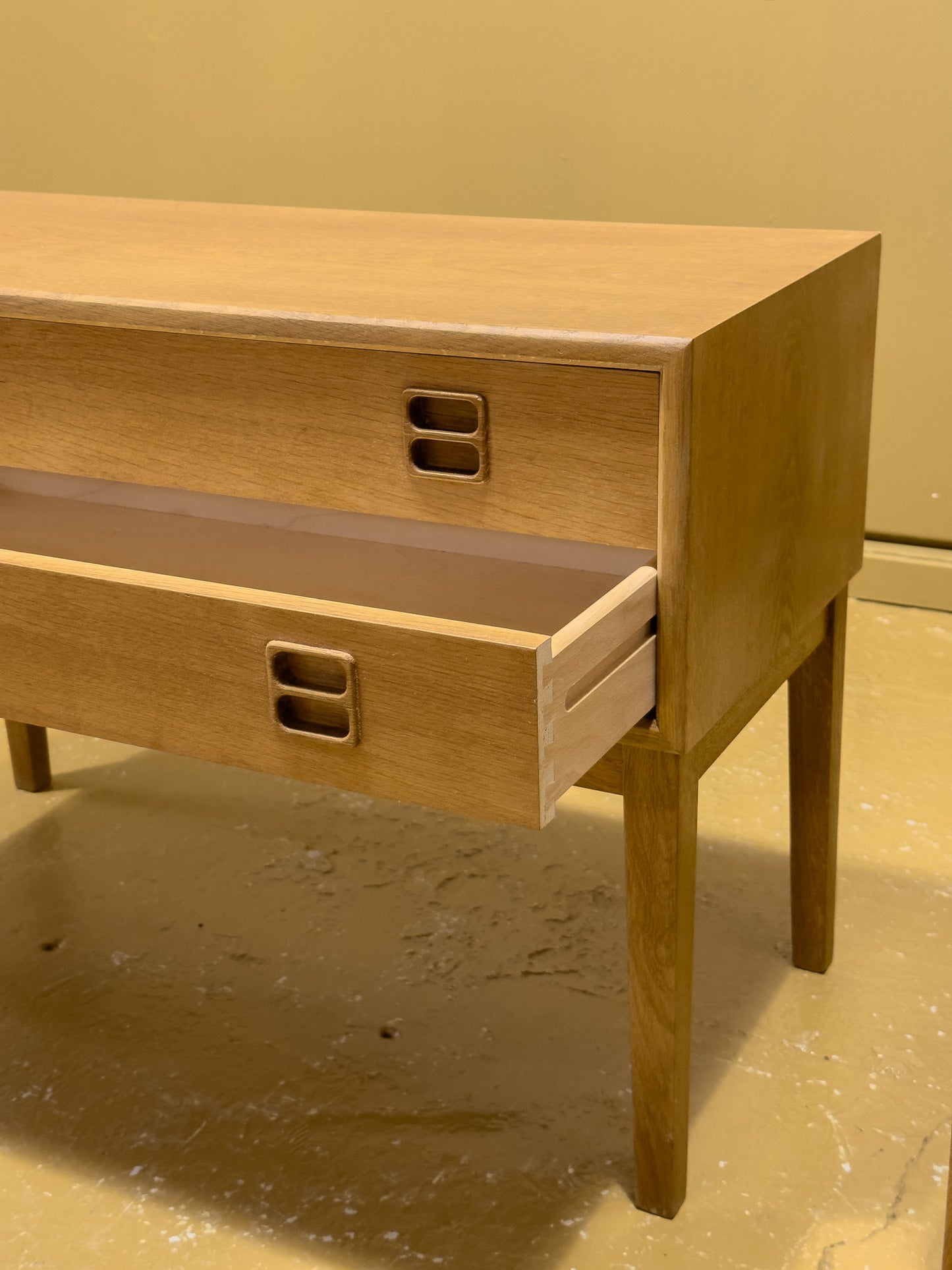 Pair of small chest of drawers. Would make great bedside tables or end of sofa pieces. Oak with a beech lining. Danish 1950s. The price is per chest of drawers.