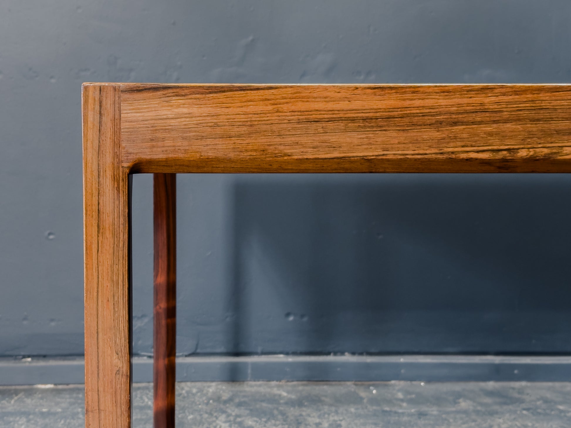 The surface is finished in a rich rosewood veneer, showcasing elegant linear grain patterns and warm tonal variations that add depth and character without overpowering the minimalist frame.