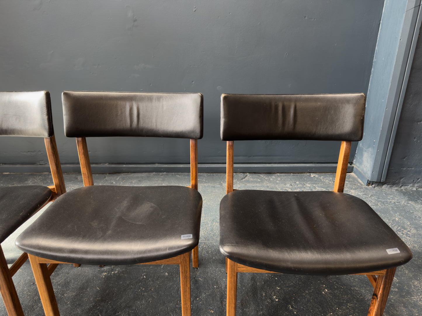 Set of 6 Kurt Østervig Solid Rosewood and Black Leather Dining Chairs