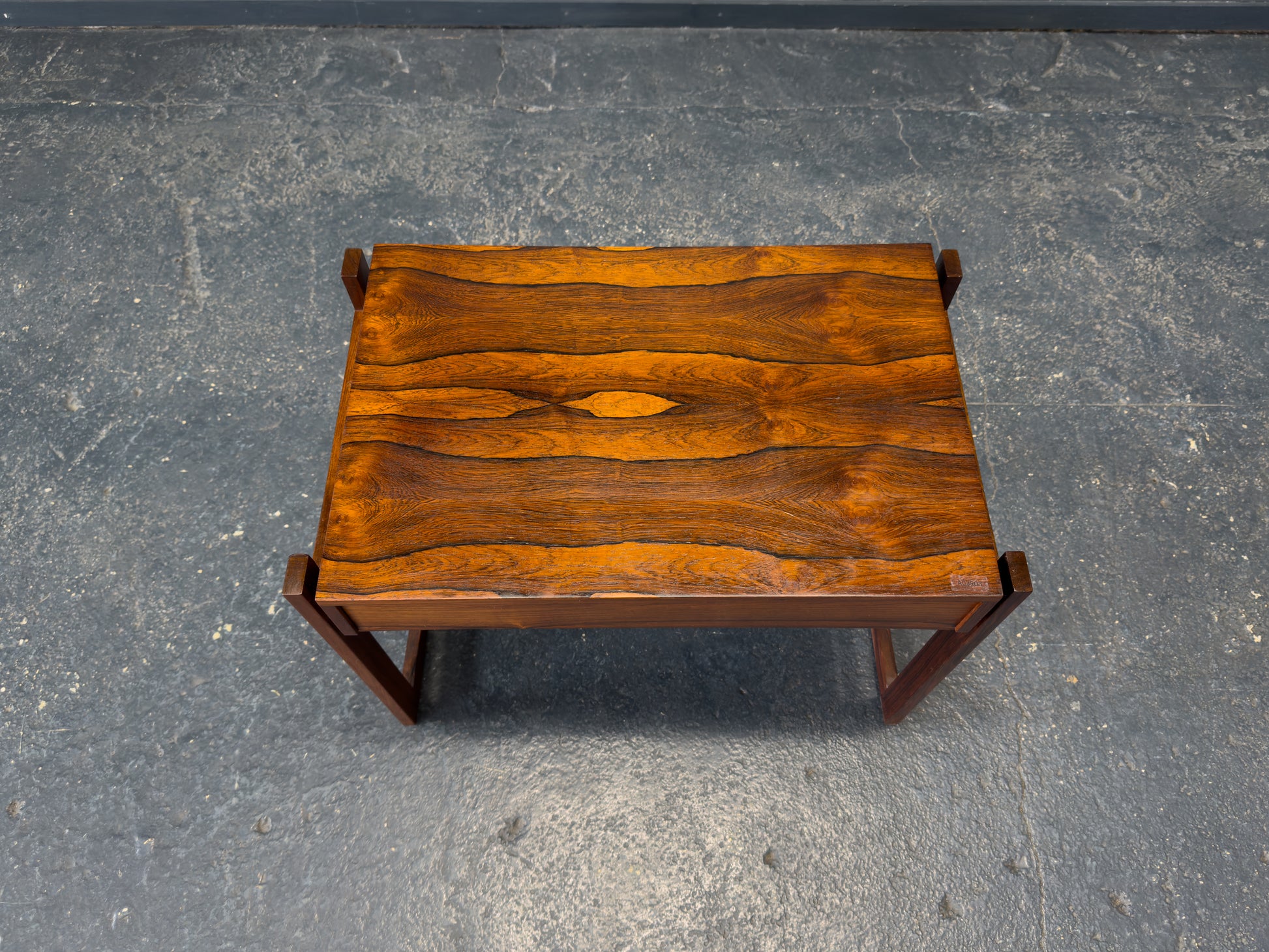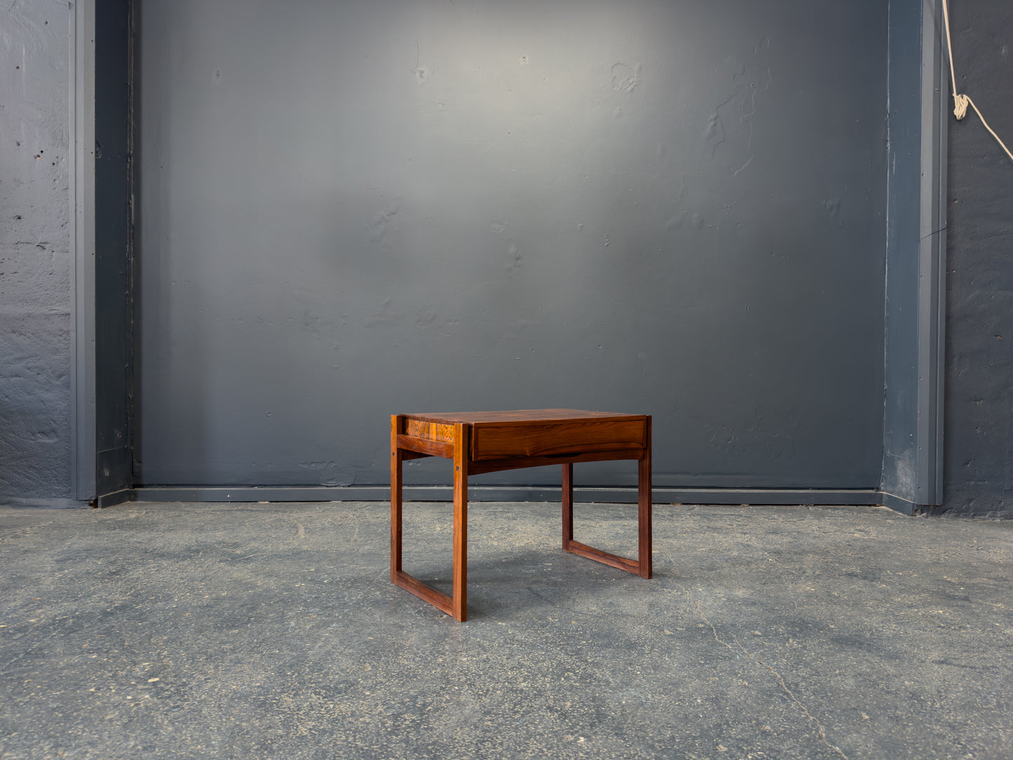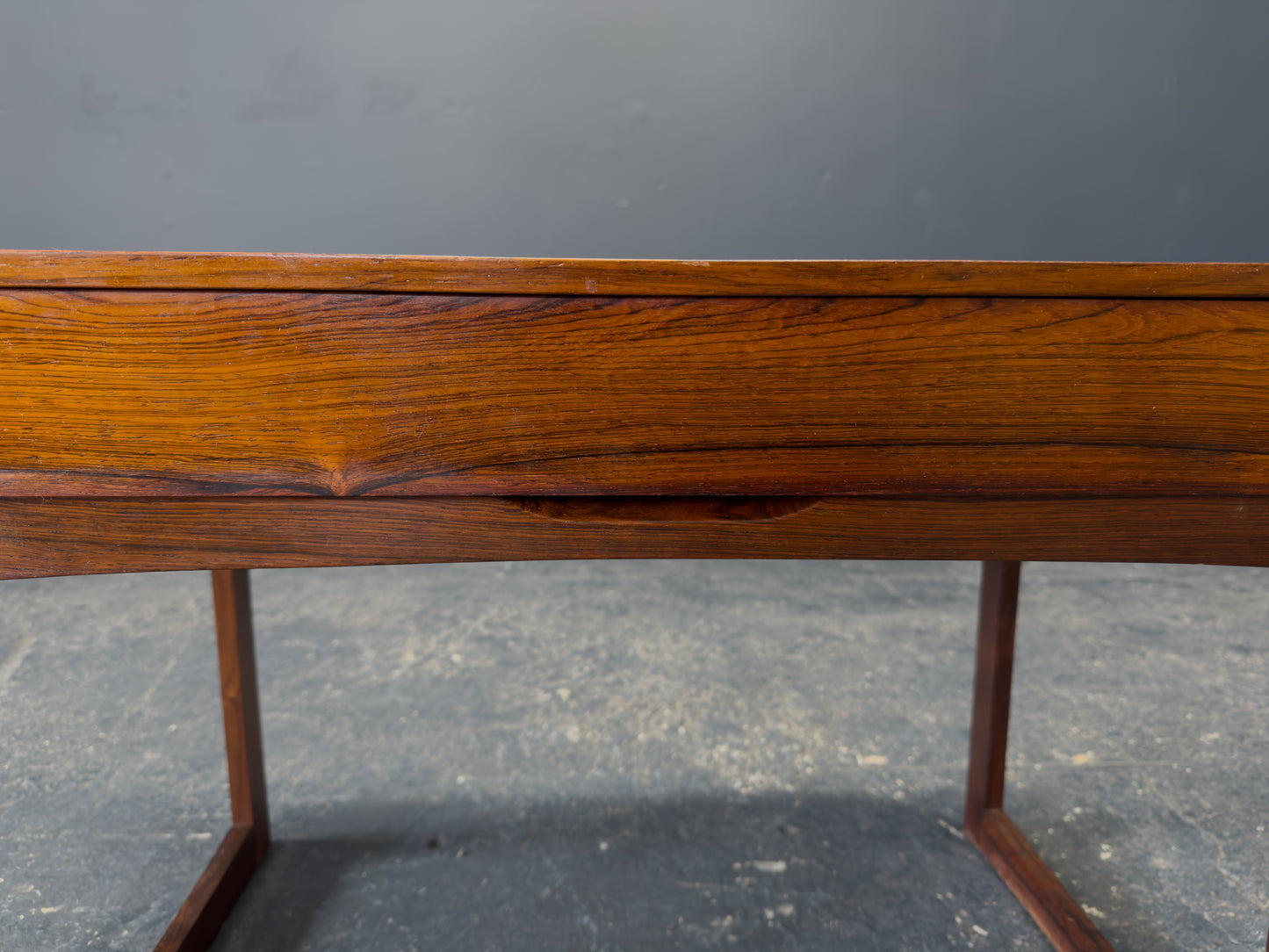 This compact rosewood chest of drawers exemplifies minimalism elevated by expert craftsmanship and intelligent design. Its sleek, rectangular silhouette is defined by clean lines and a floating visual lightness, thanks in large part to its open, squared-leg frame — a modernist nod that gives the piece both structure and sculptural grace.