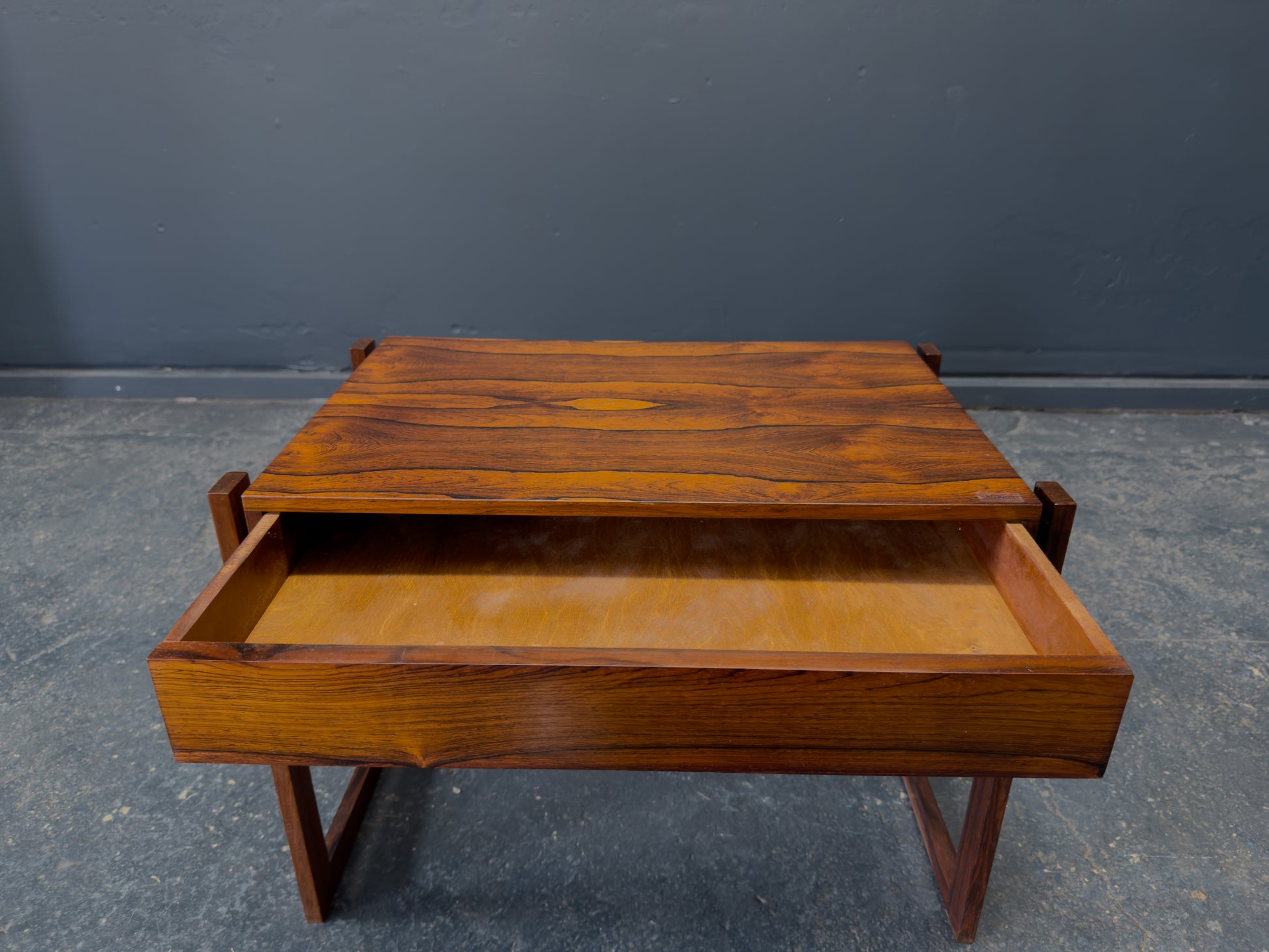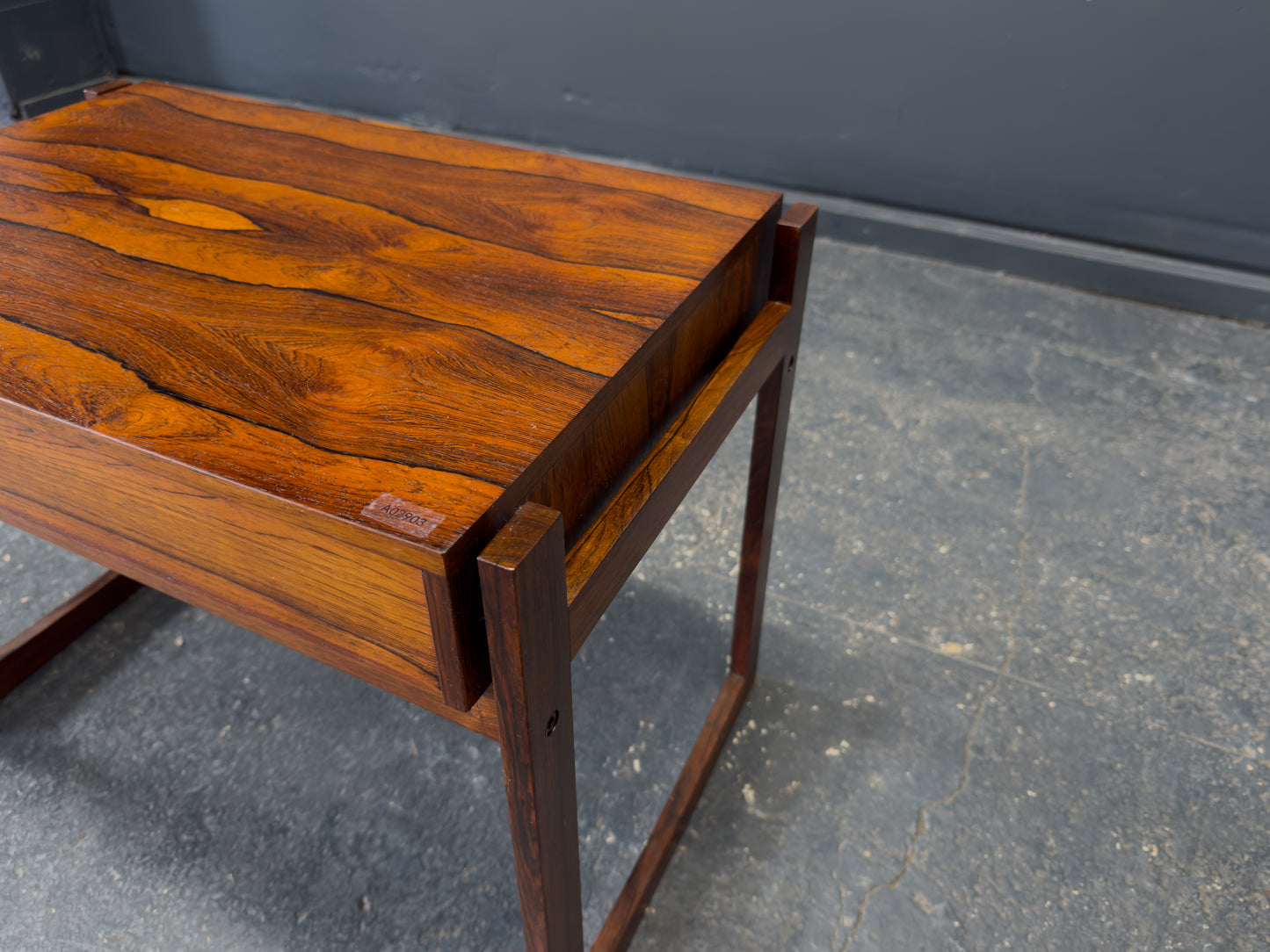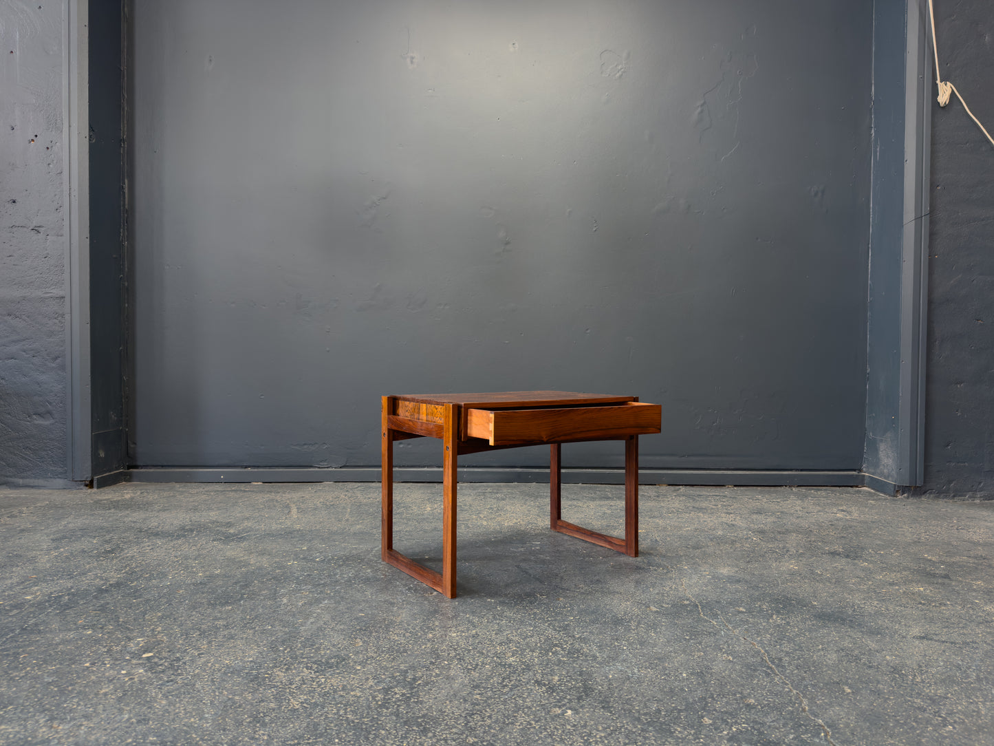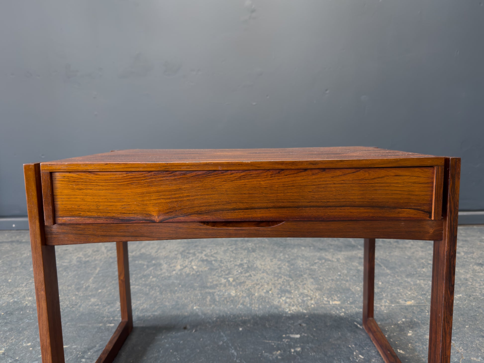 This compact rosewood chest of drawers exemplifies minimalism elevated by expert craftsmanship and intelligent design. Its sleek, rectangular silhouette is defined by clean lines and a floating visual lightness, thanks in large part to its open, squared-leg frame — a modernist nod that gives the piece both structure and sculptural grace.