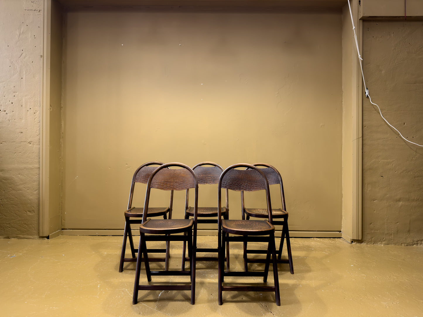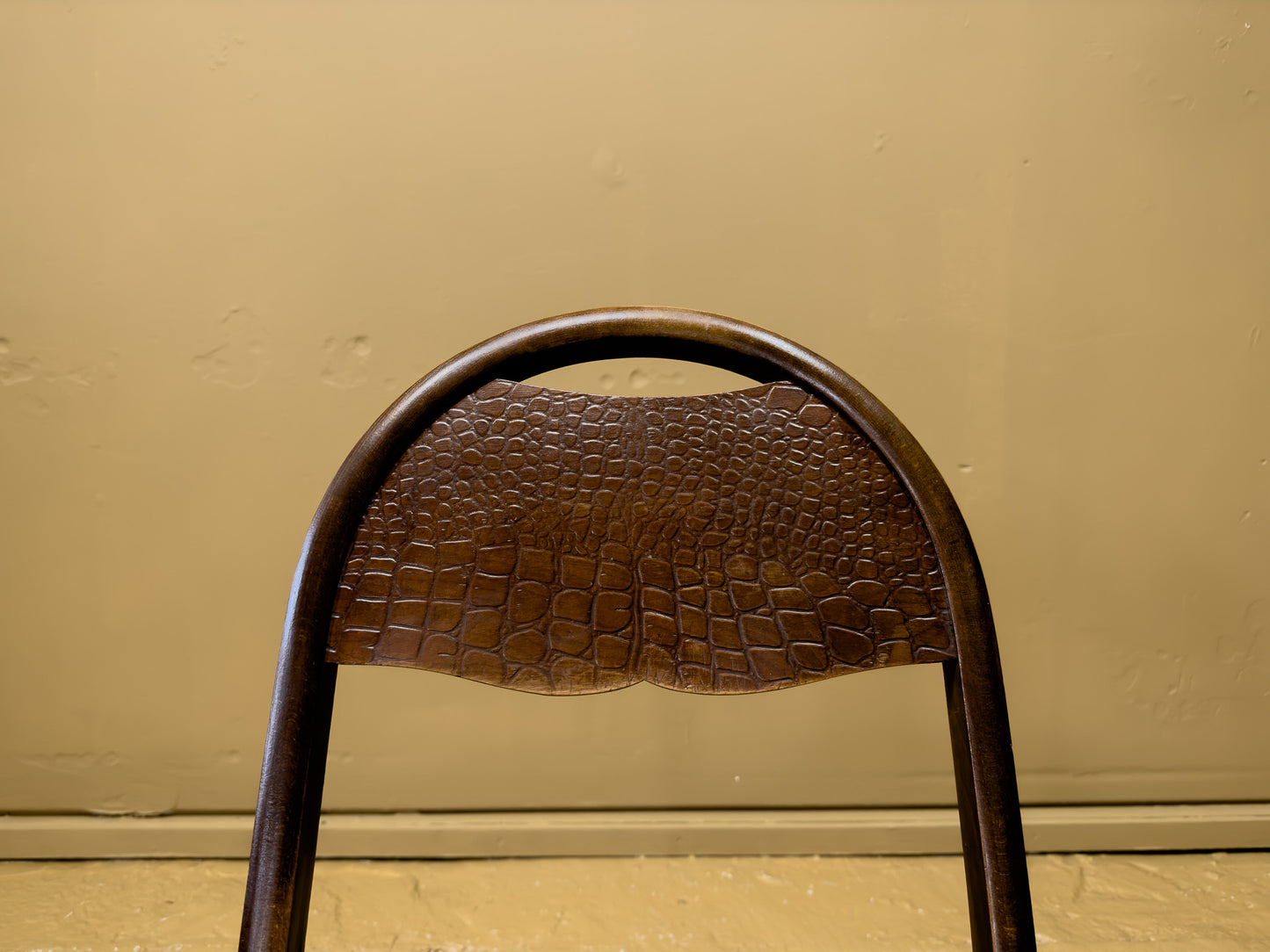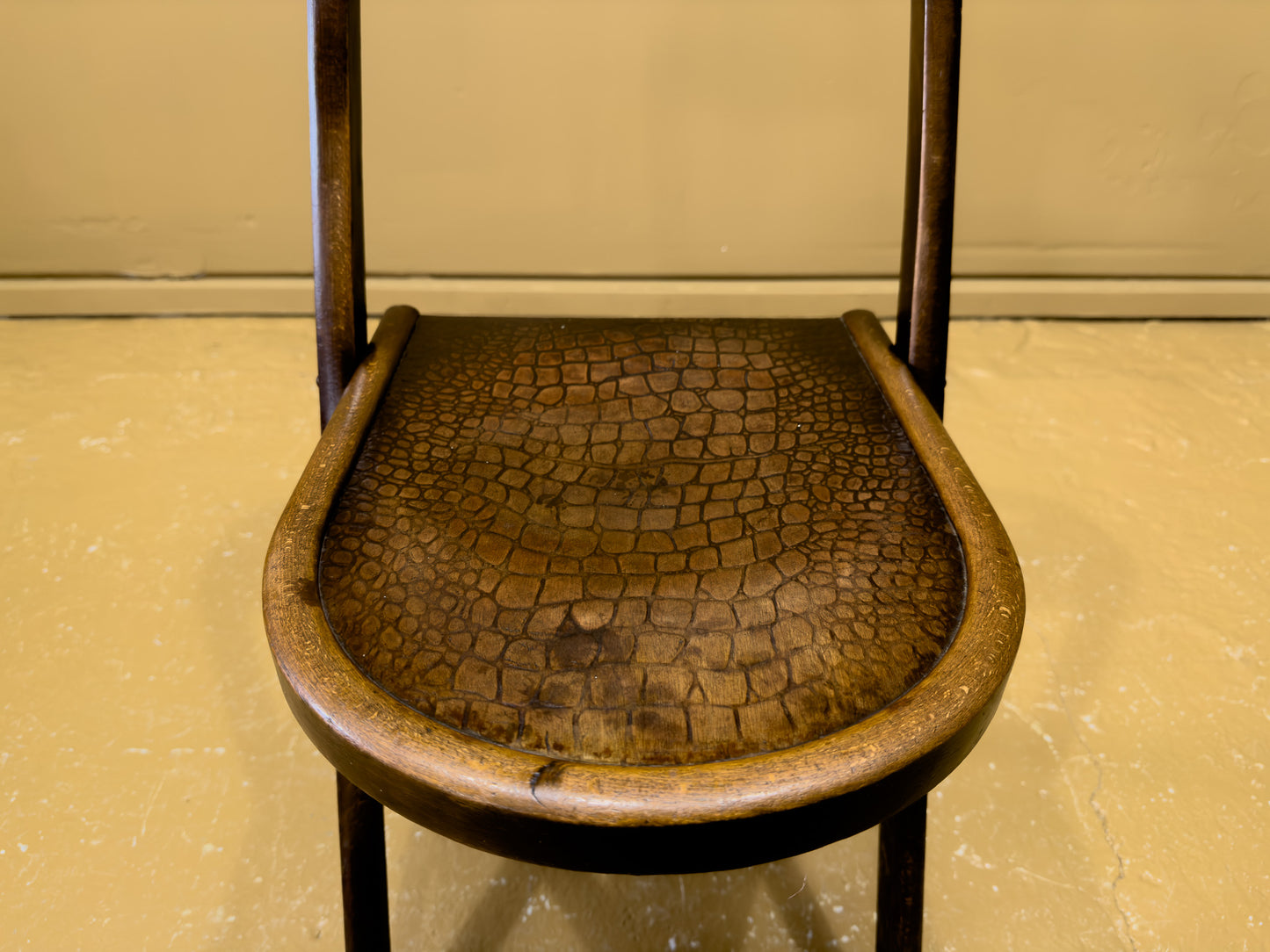 Beautiful Central European folding chairs from the beginning of the 20th century. Seat embossed with a crocodile patterns on the otherwise simple chair. Great patina. Austria, c.1910, three available, price is per chair.