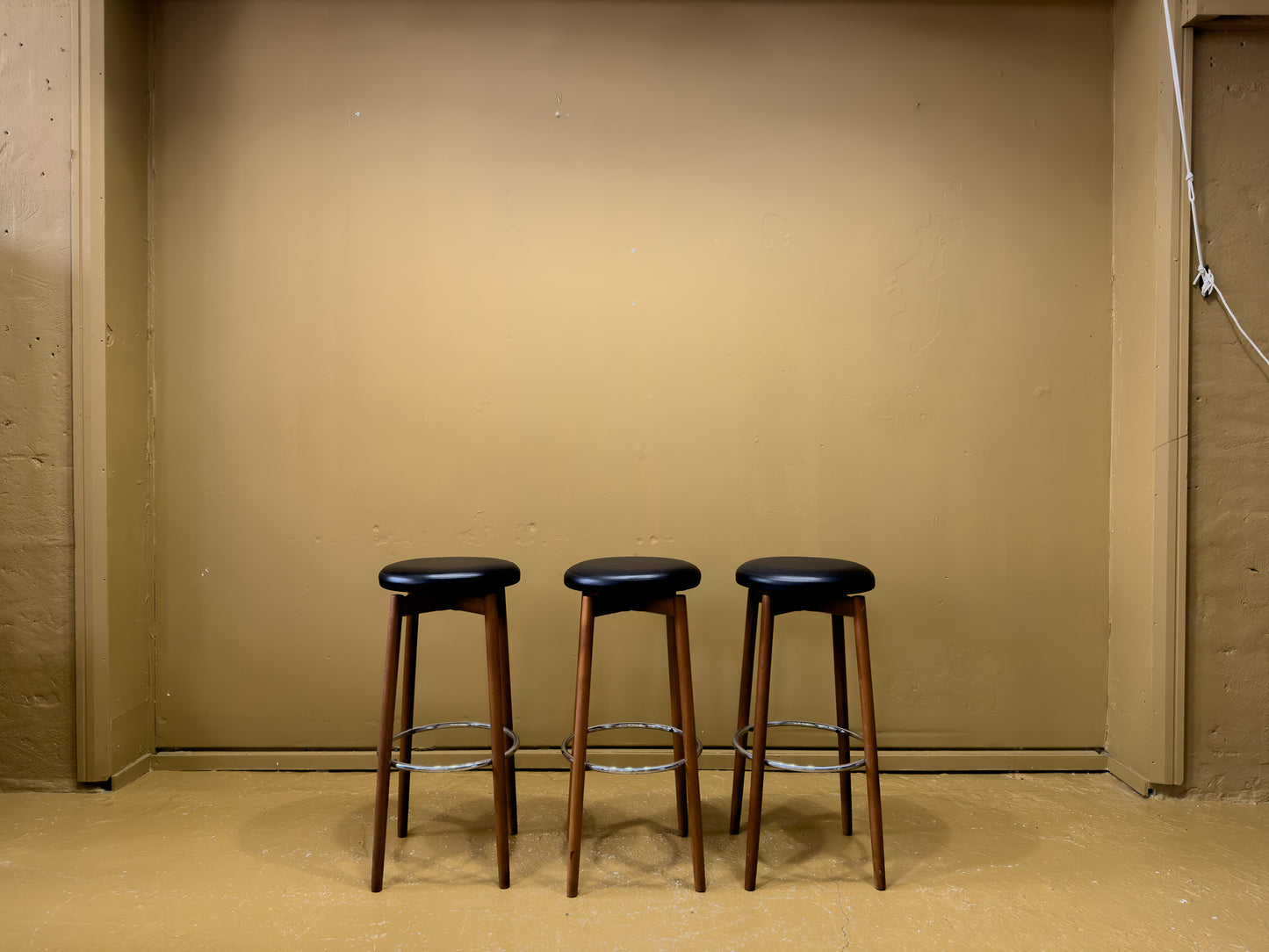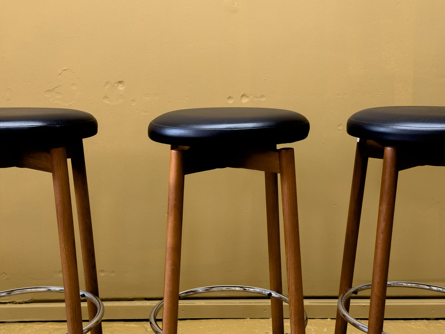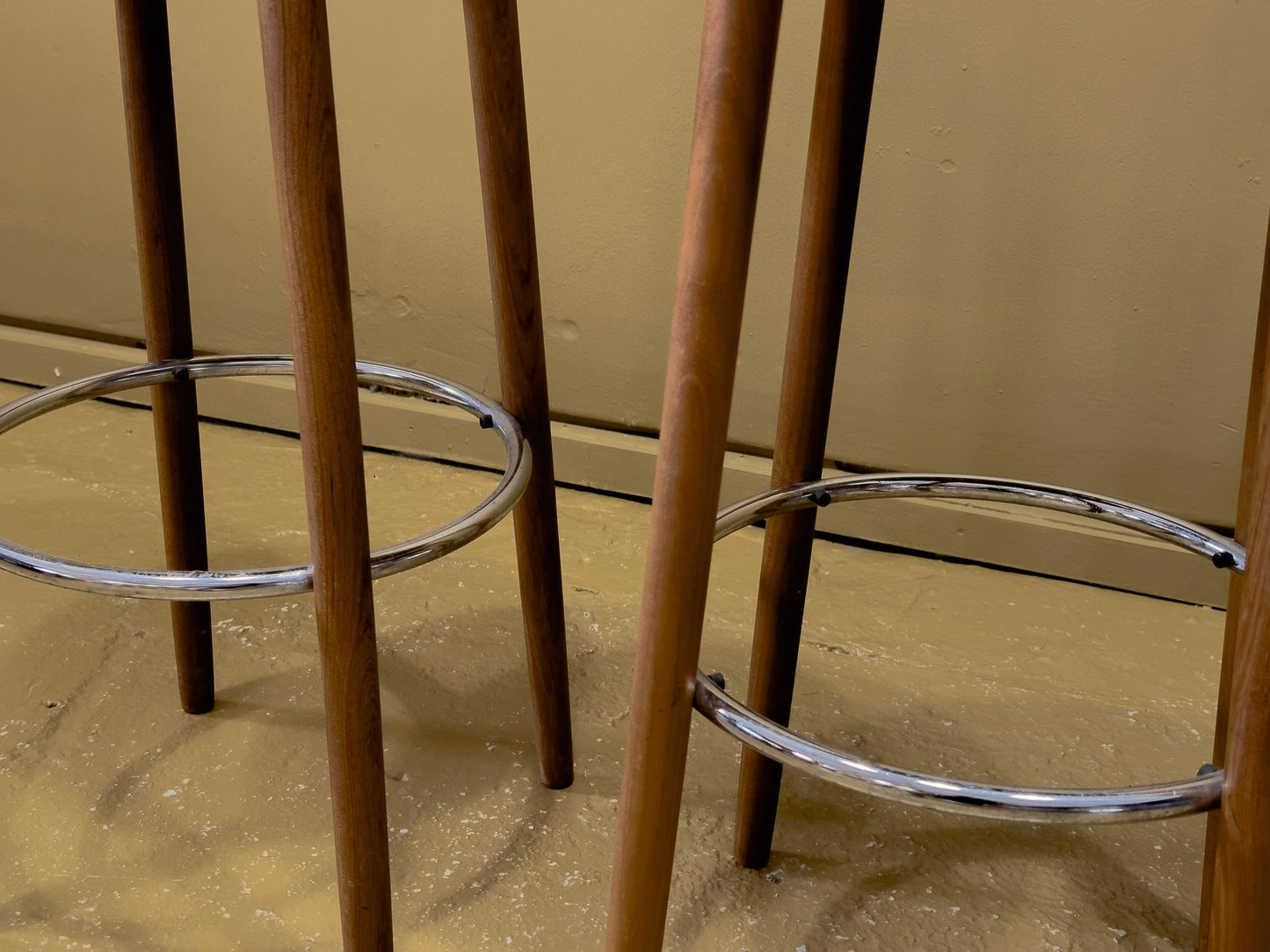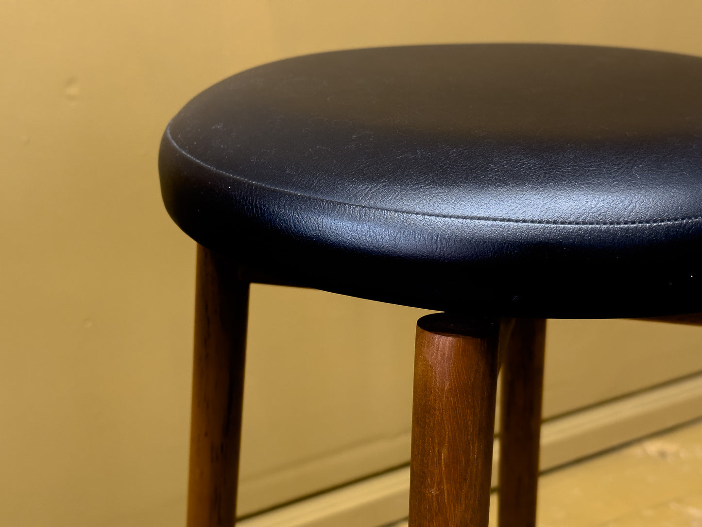Leather bar stools made by Spoetrup. Danish 1960s. 3 with black original leather seats. Price is Per stool.